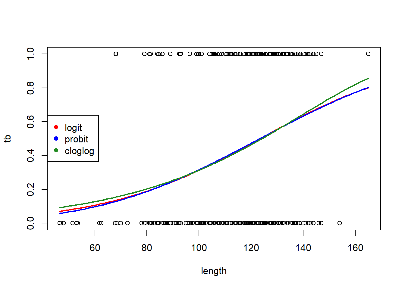 The AIC slightly favors the complementary log-log link.