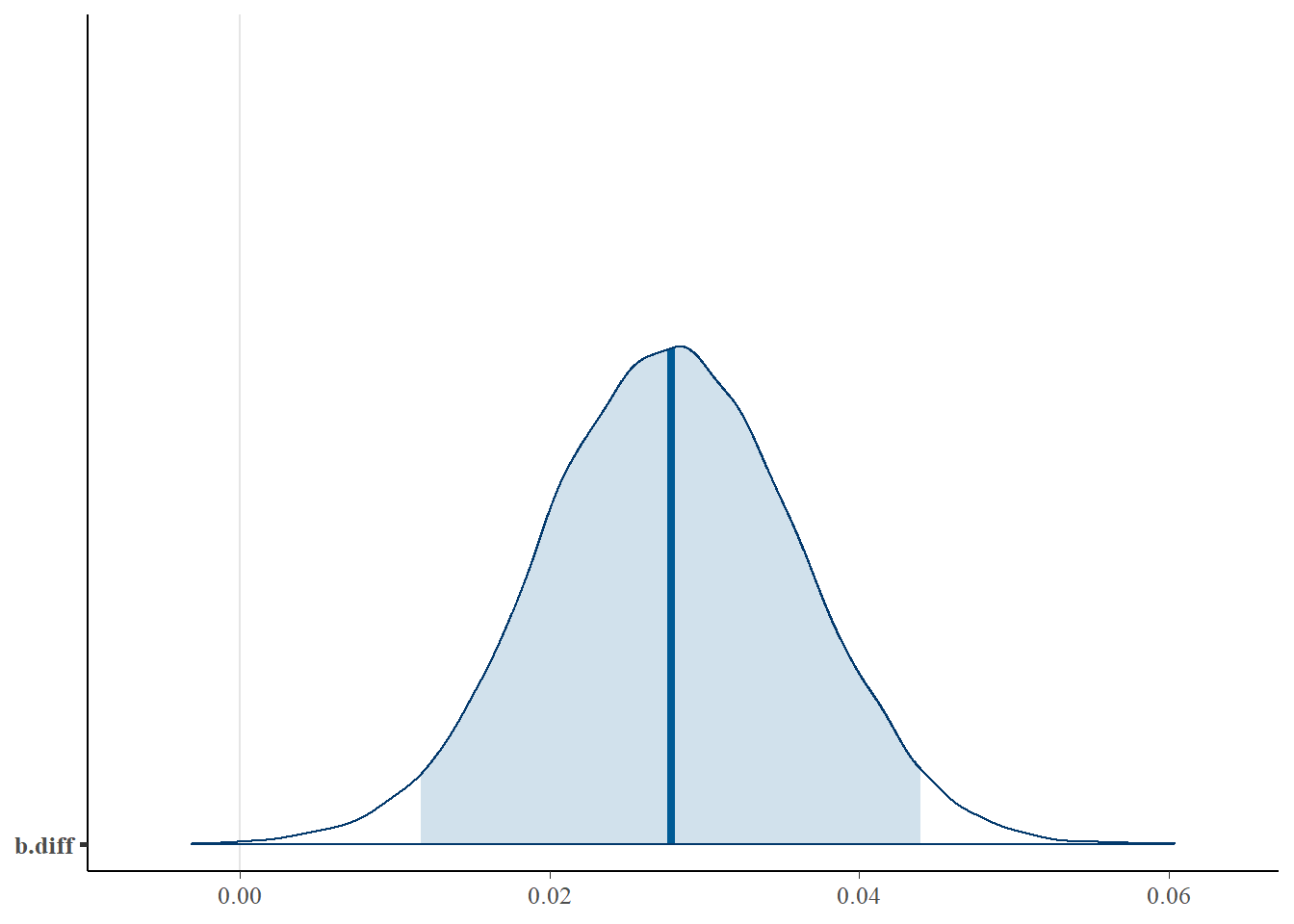 For the sake of comparing marginal means to conditional means, we will consider the predicted removal rate of dark morphs at a hypothetical location 20 km from the city center. This predicted removal rate is 0.319.