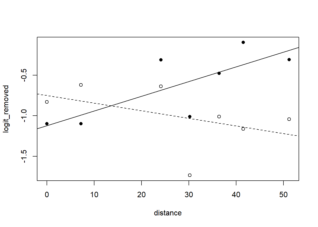 We see that only the linear trend of the nitrogen treatment is significant. Let’s make a quick plot to visualize this effect.