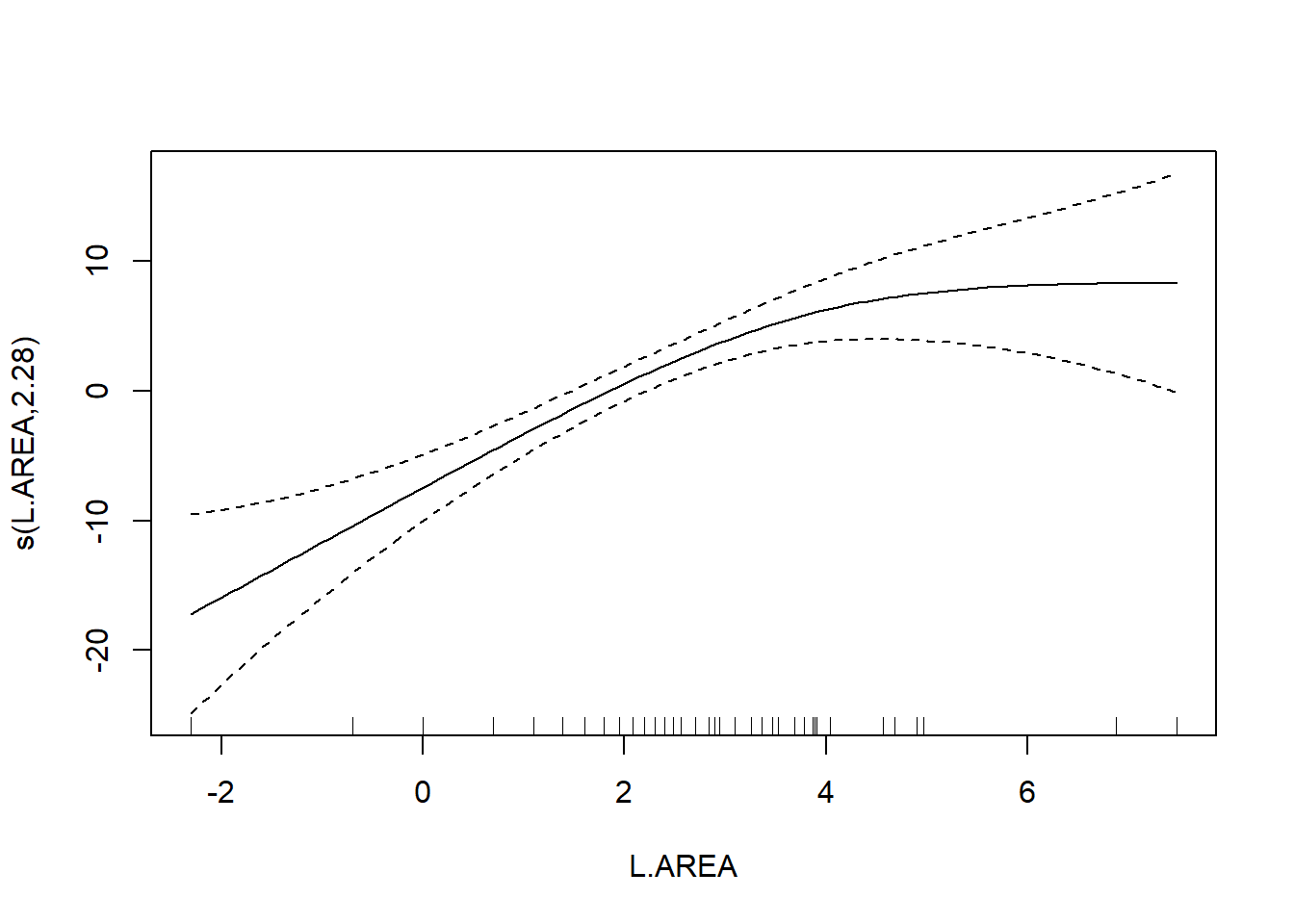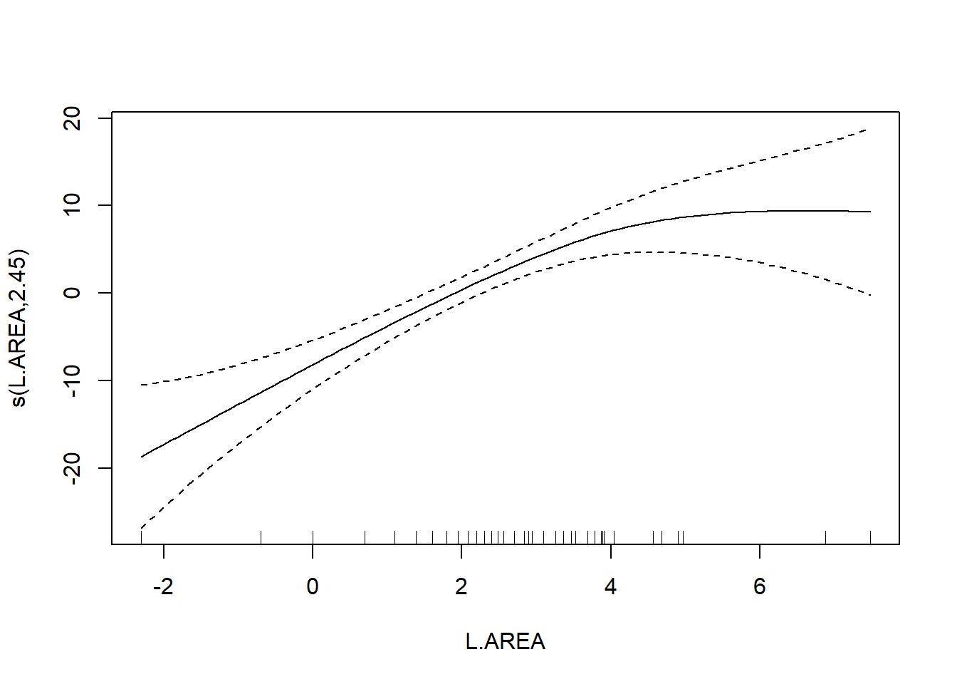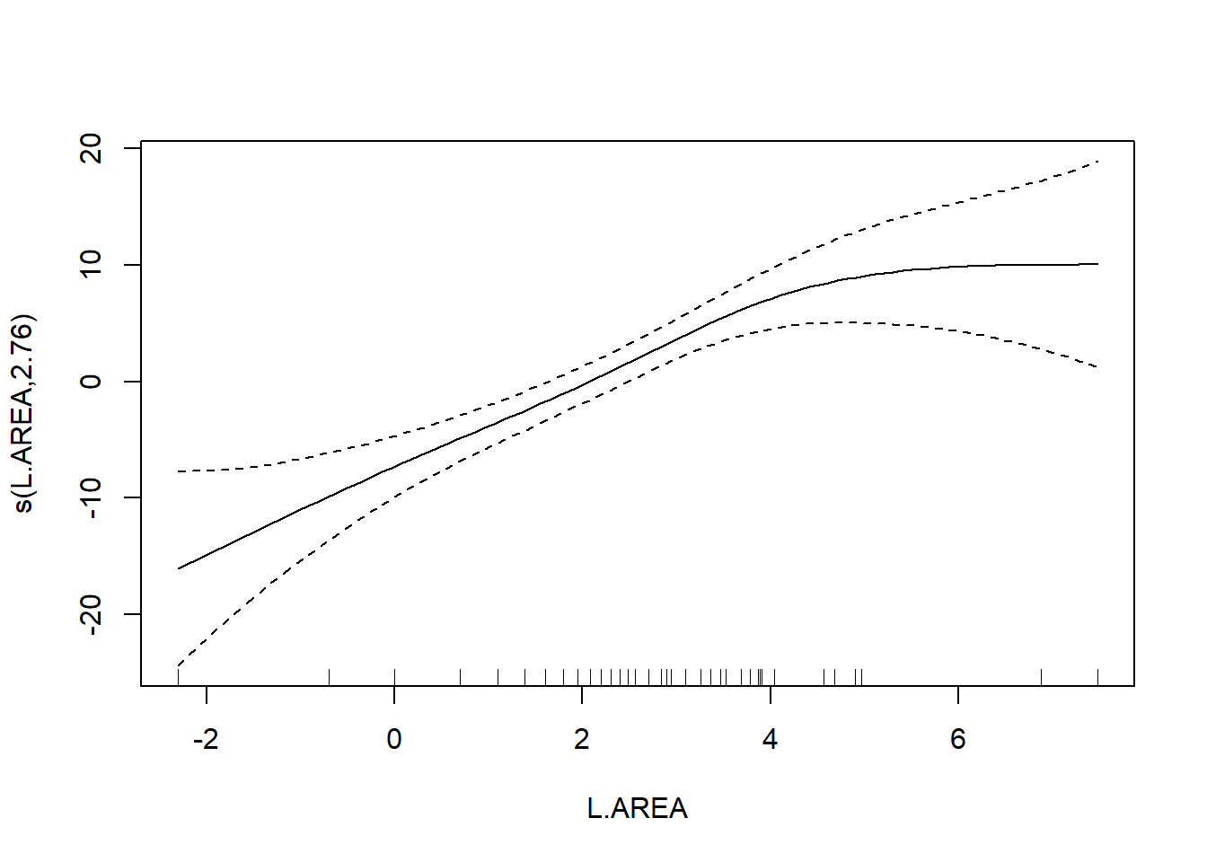 ## s(L.AREA) 2.761 3.478 11.67 4.71e-06 ***