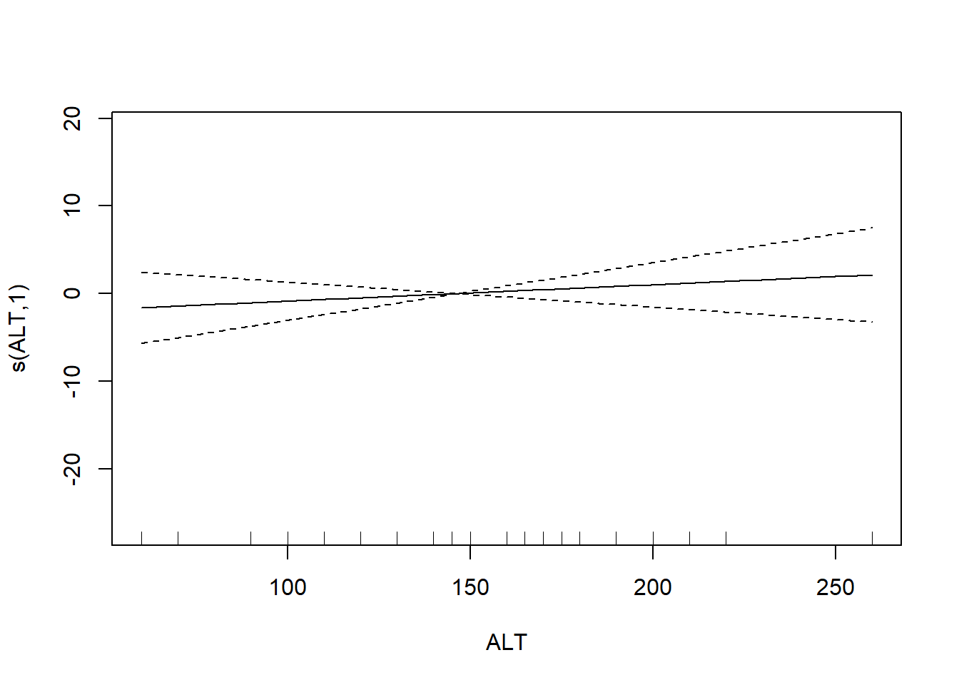 To conclude, we’ll conduct a formal test of whether the model with GRAZE as a factor provides a significantly better fit than the model with a linear effect of GRAZE. In this case, we have to use regression splines for the smooth effect of L.AREA. If we want to continue working in mgcv::gam